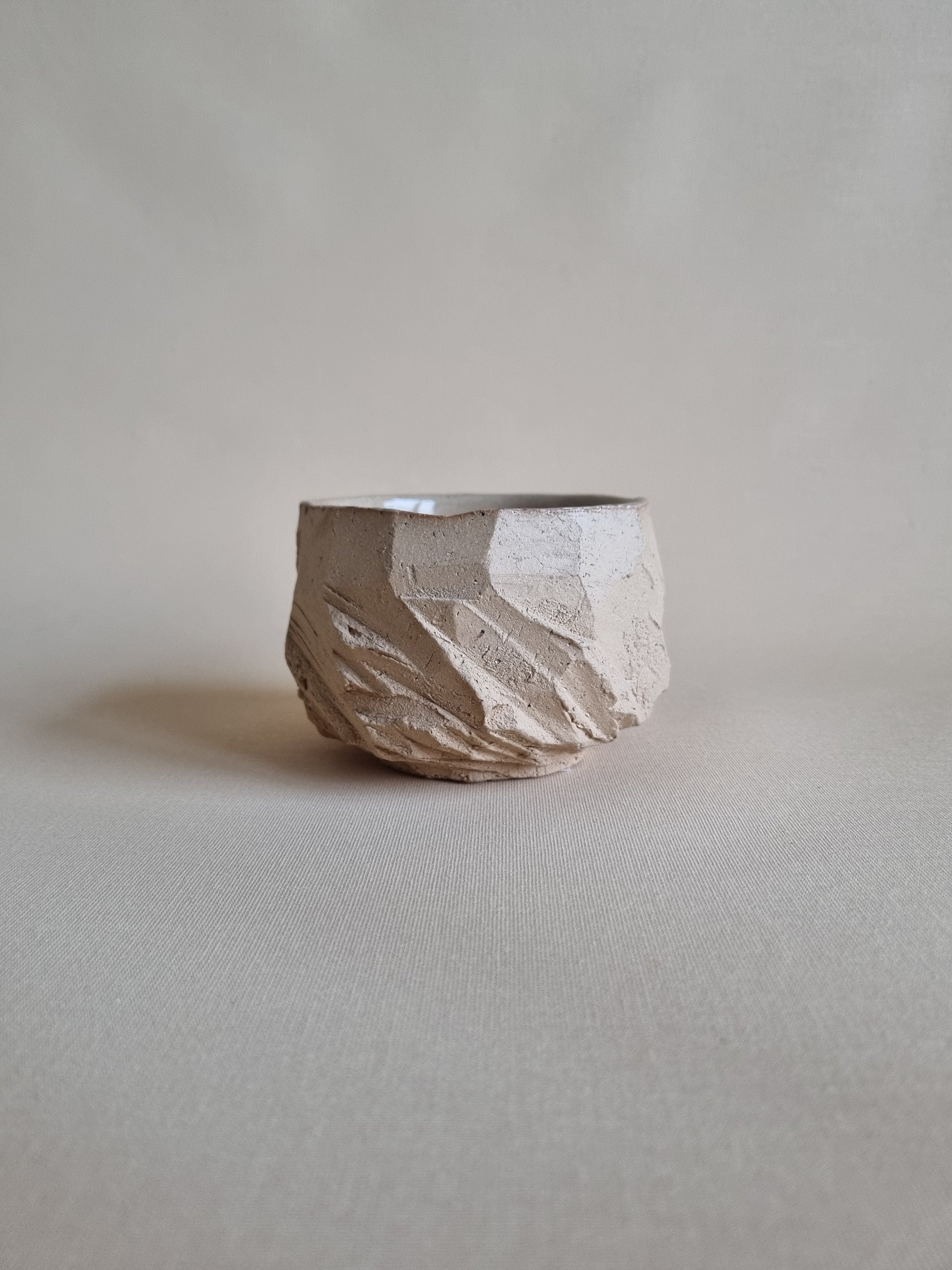 A medium cup, perfect for coffee or tea. Thrown on the wheel and carved by hand, giving it a personality of its own.