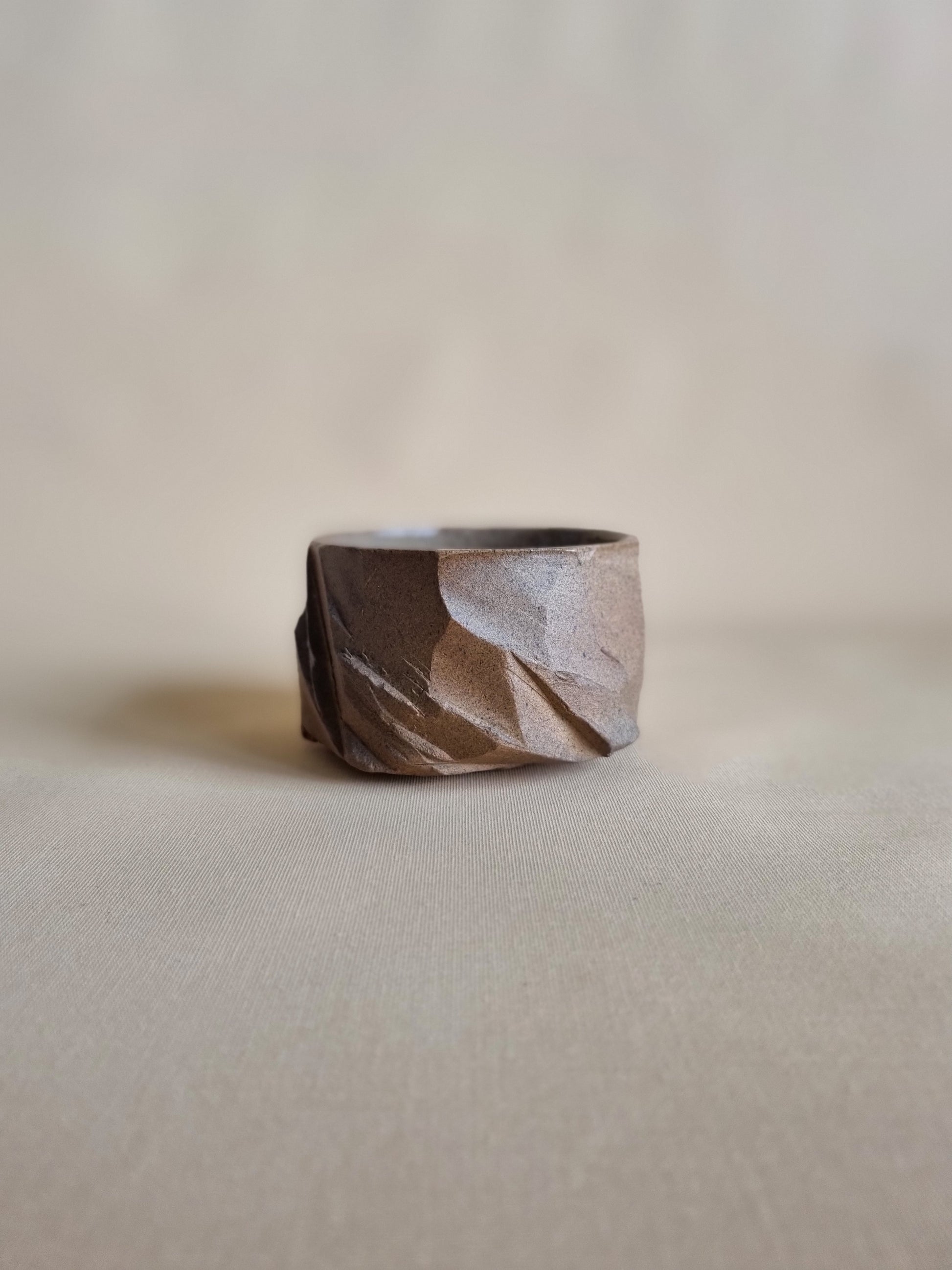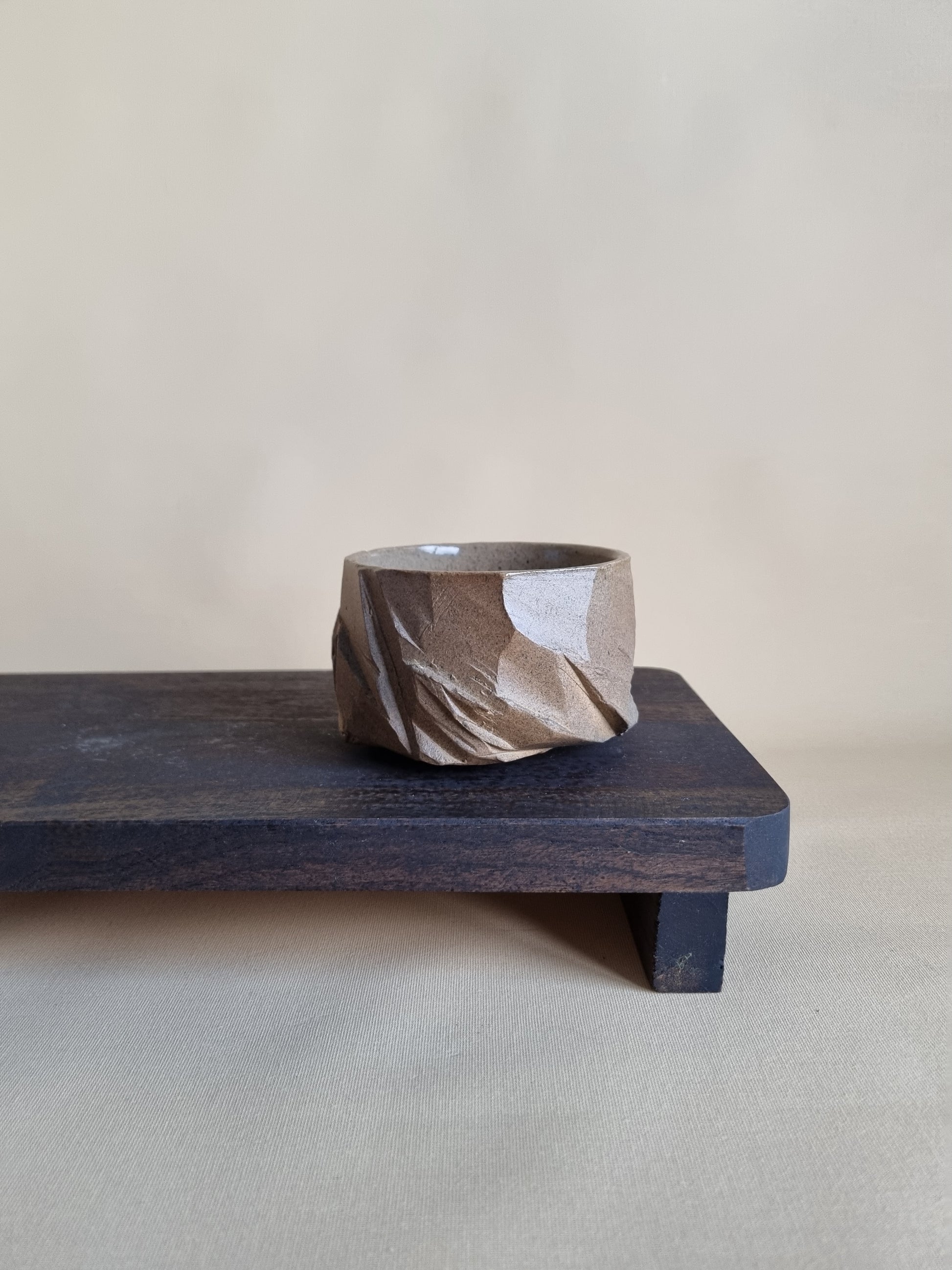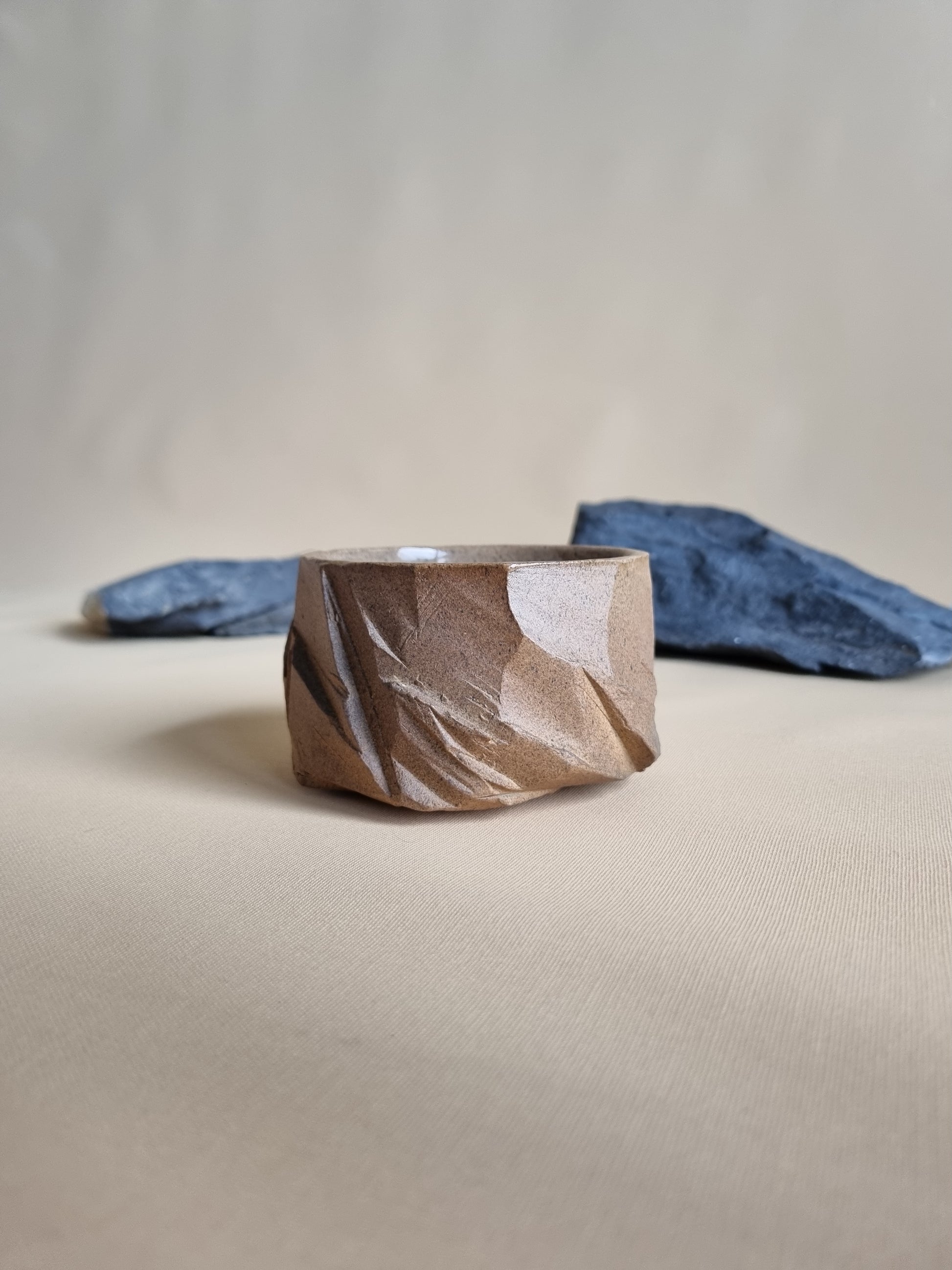 A medium cup, perfect for coffee or tea. Thrown on the wheel and carved by hand, giving it a personality of its own.