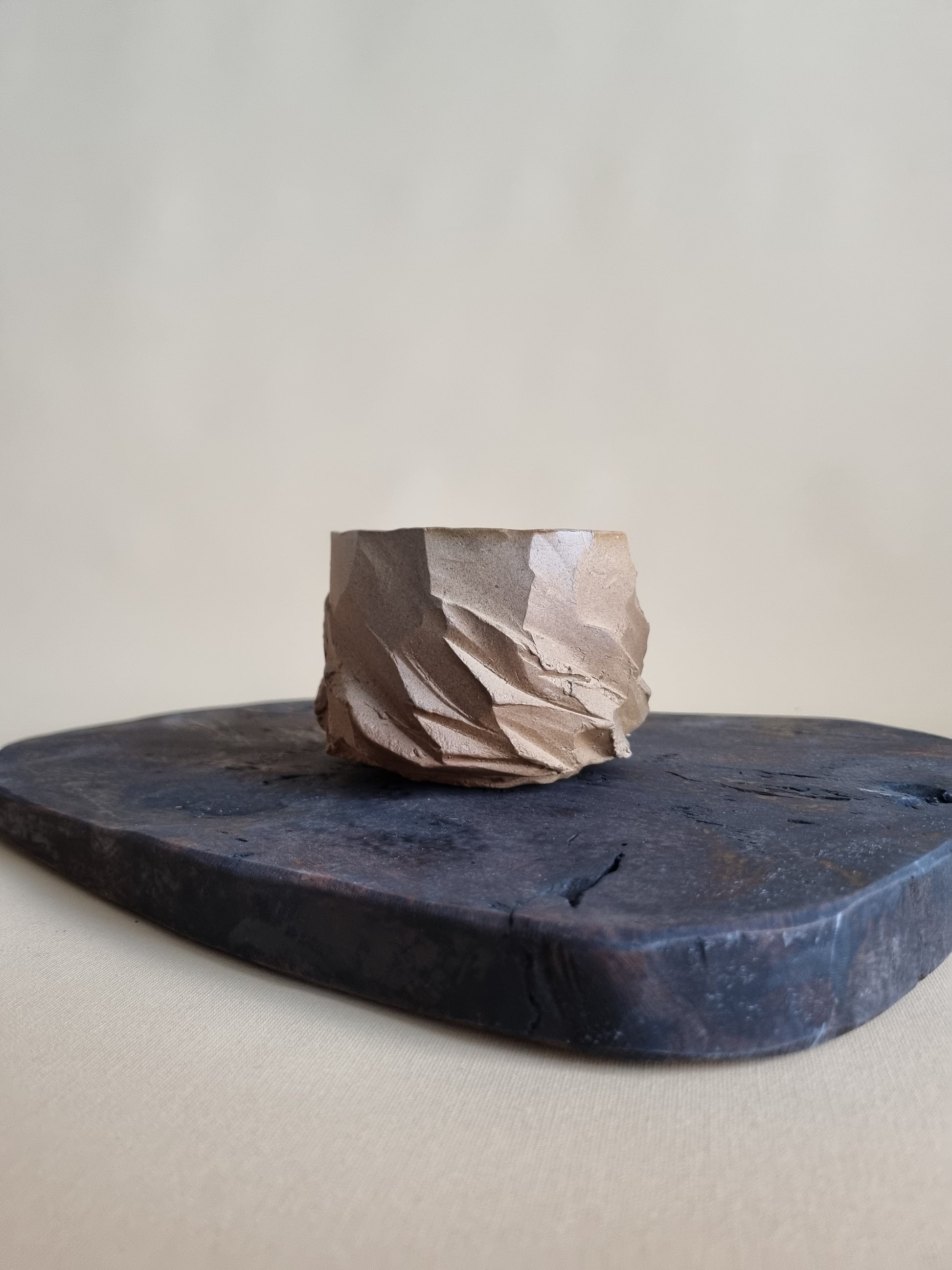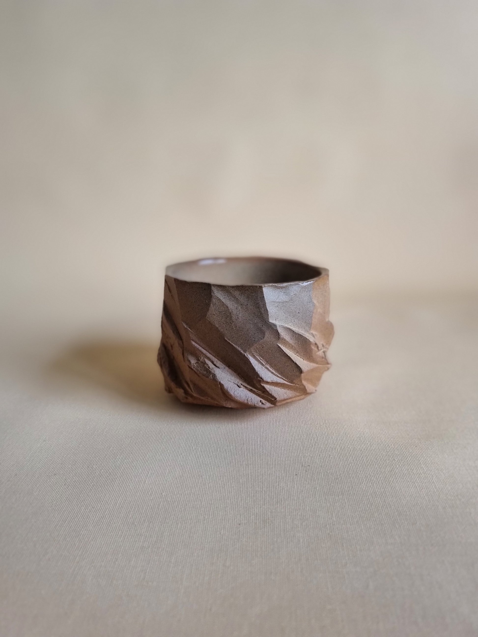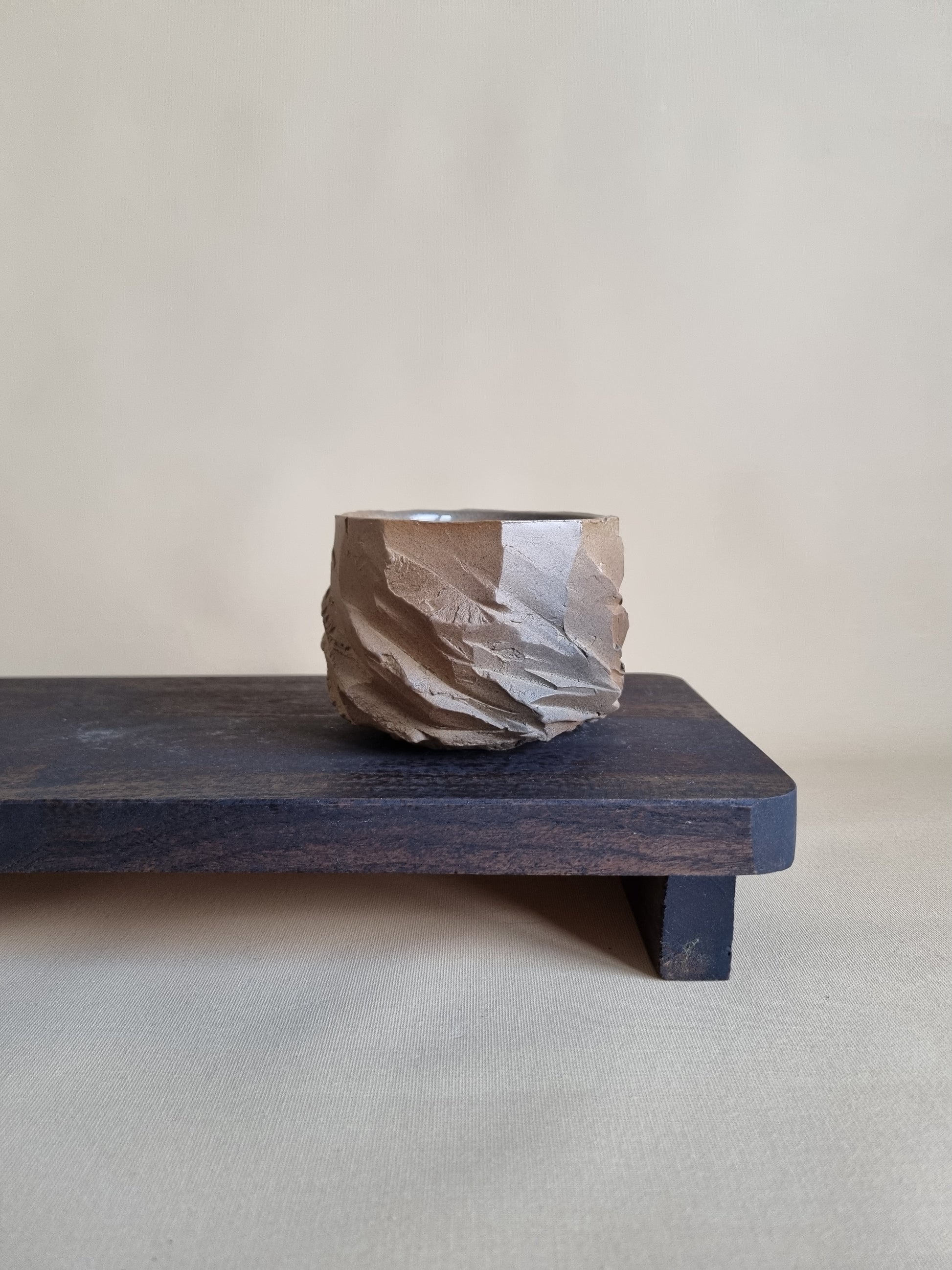 A medium cup, perfect for coffee or tea. Thrown on the wheel and carved by hand, giving it a personality of its own.