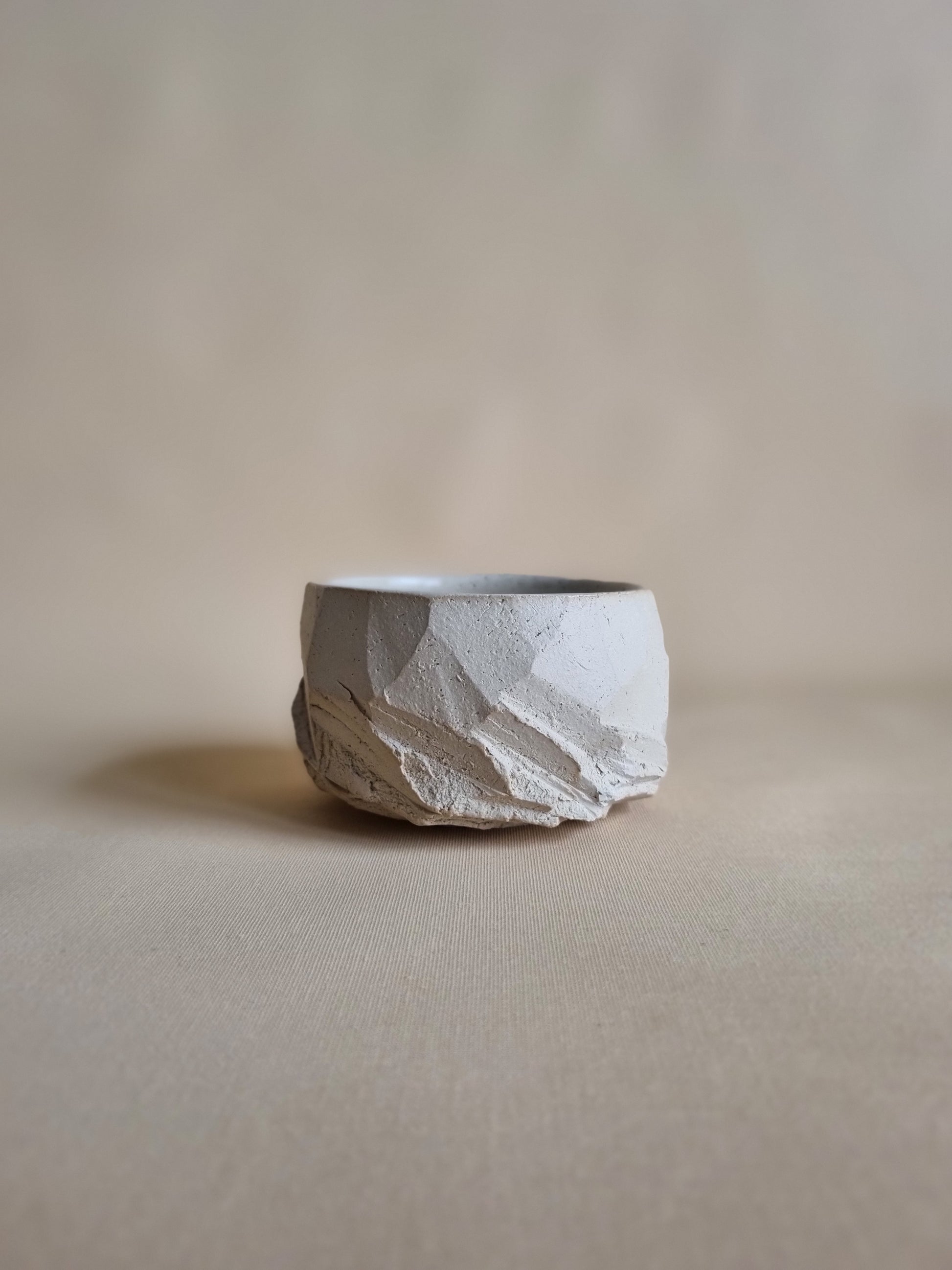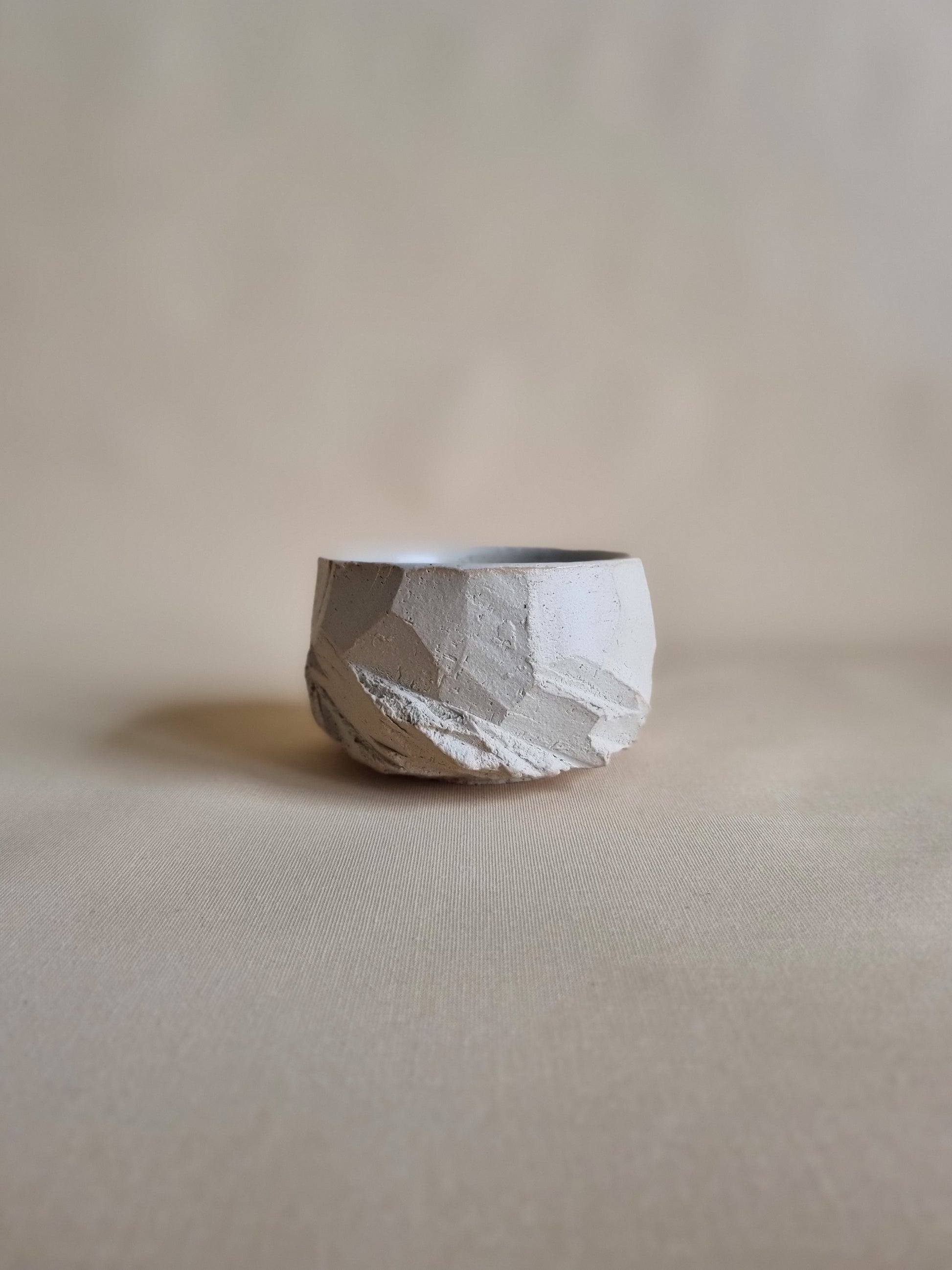 A medium cup, perfect for coffee or tea. Thrown on the wheel and carved by hand, giving it a personality of its own.