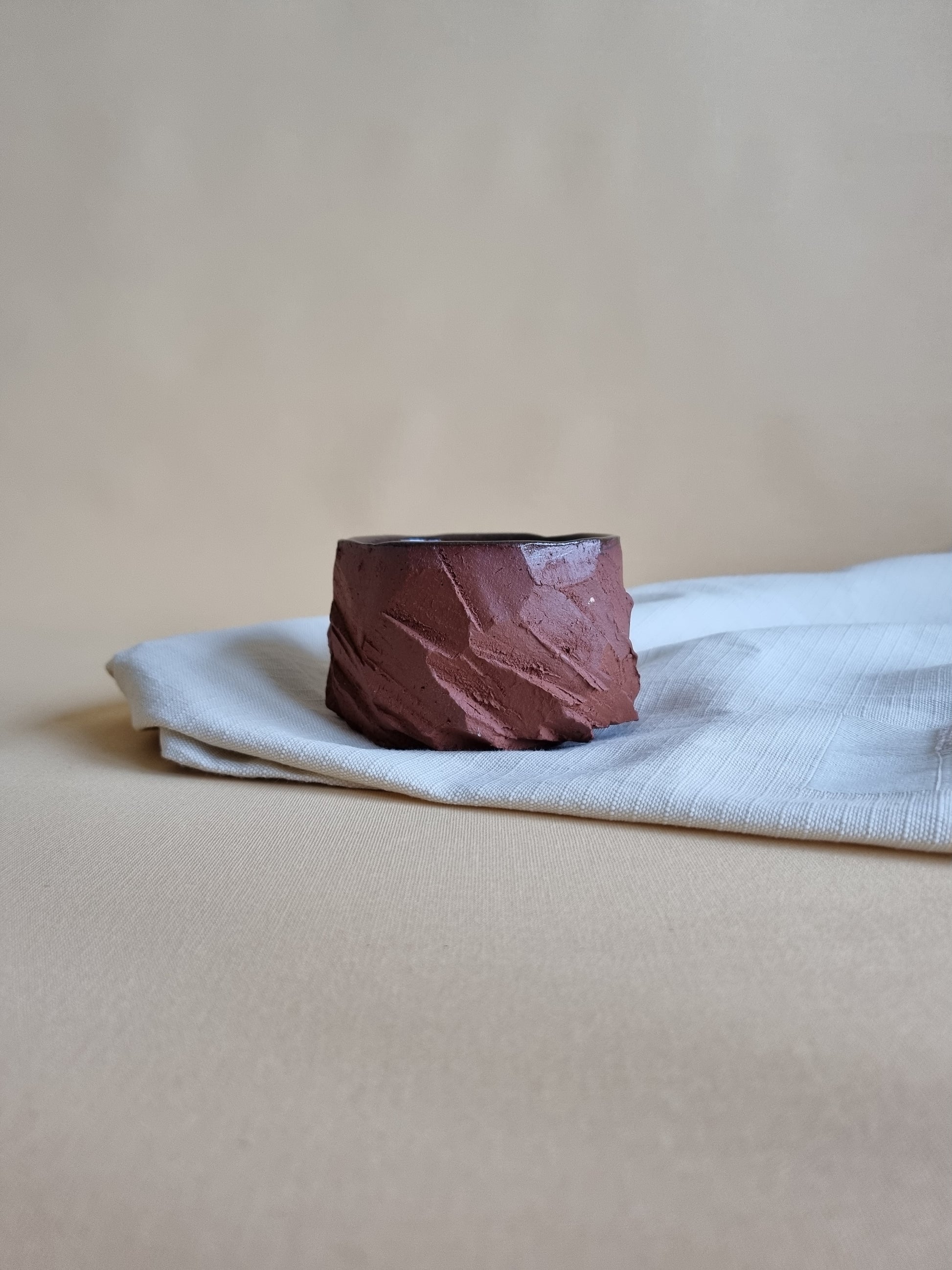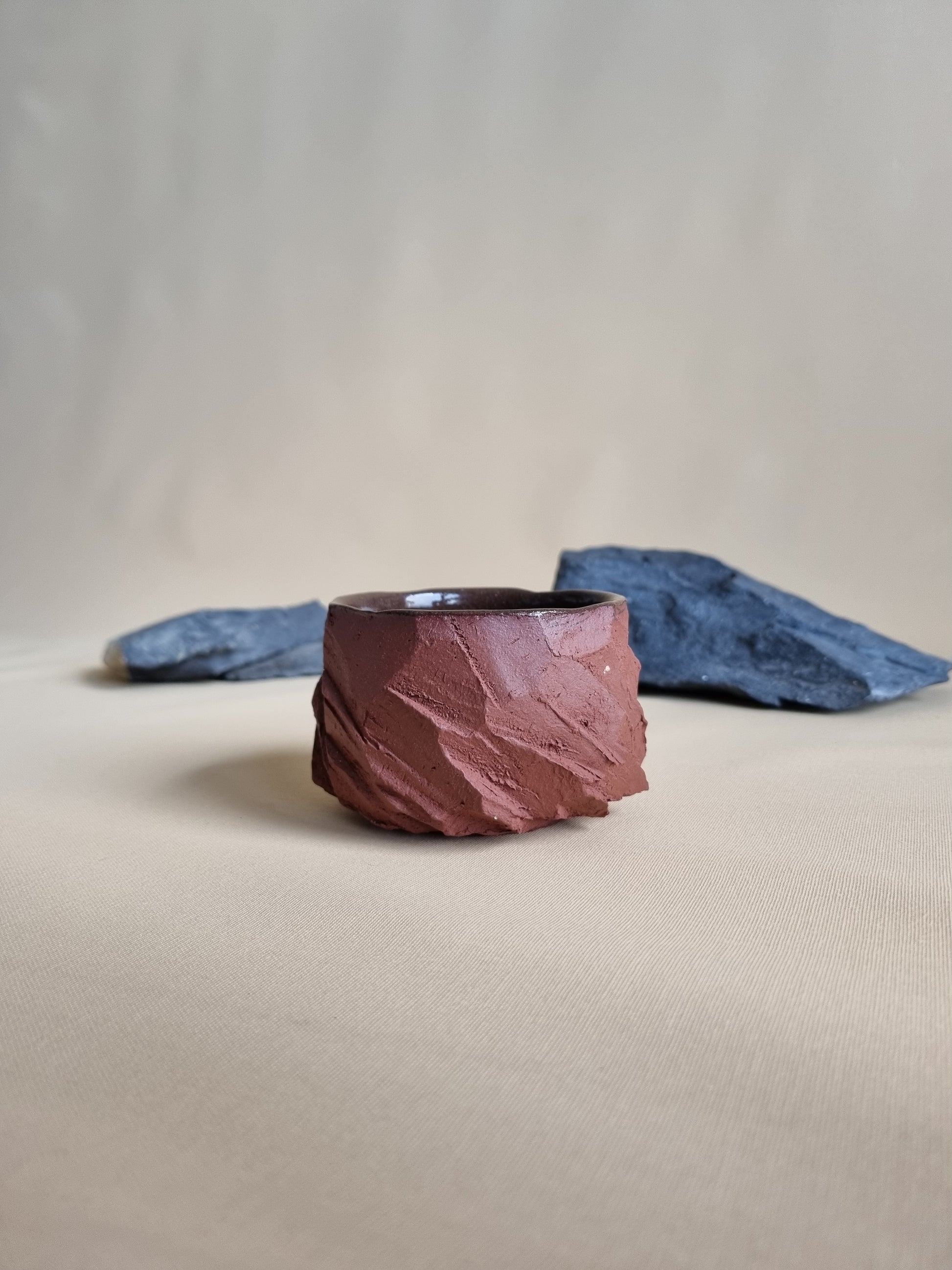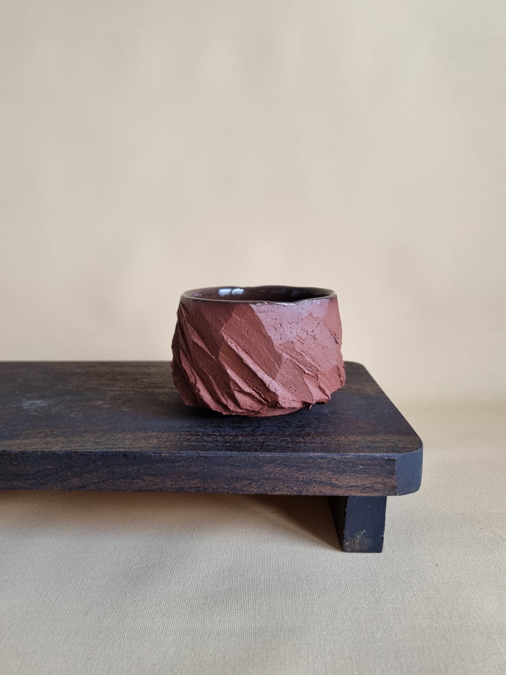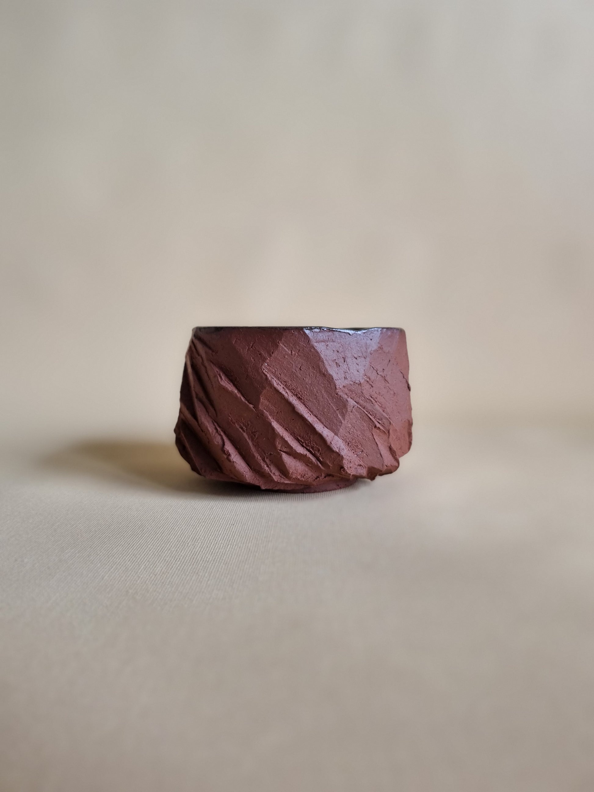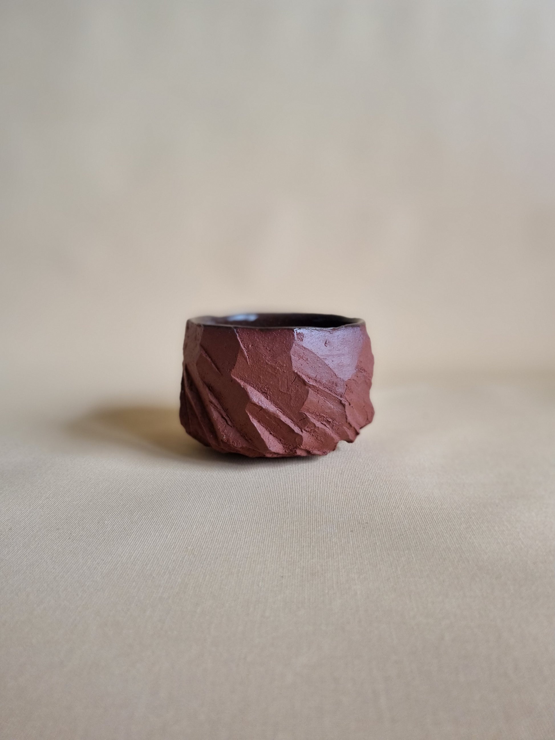 A medium cup, perfect for coffee or tea. Thrown on the wheel and carved by hand, giving it a personality of its own.