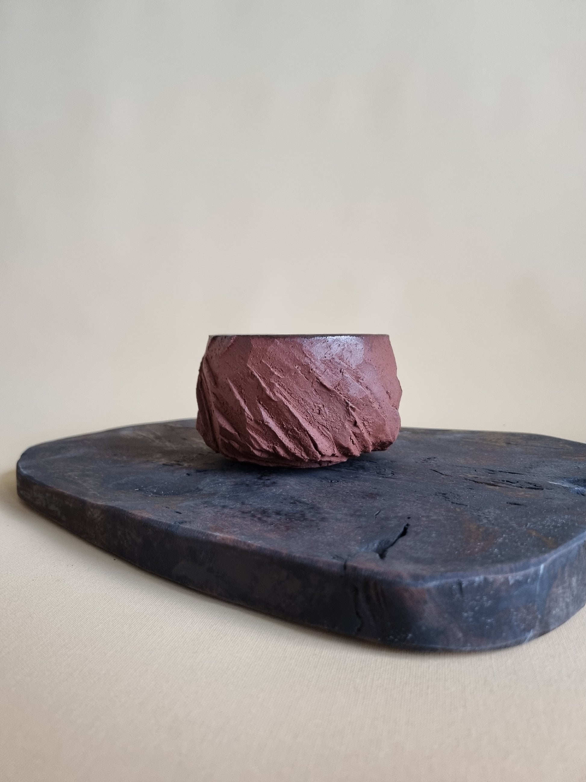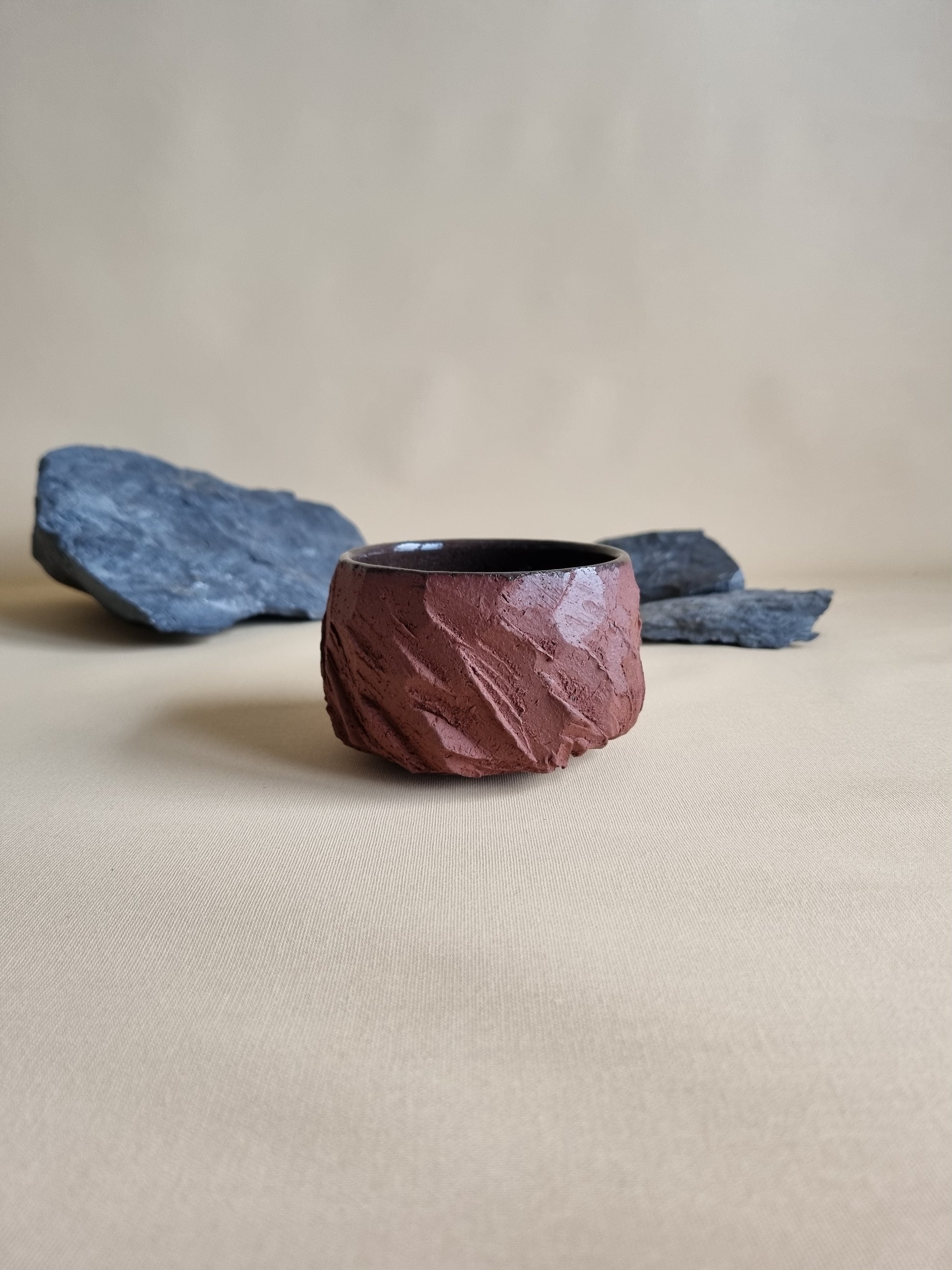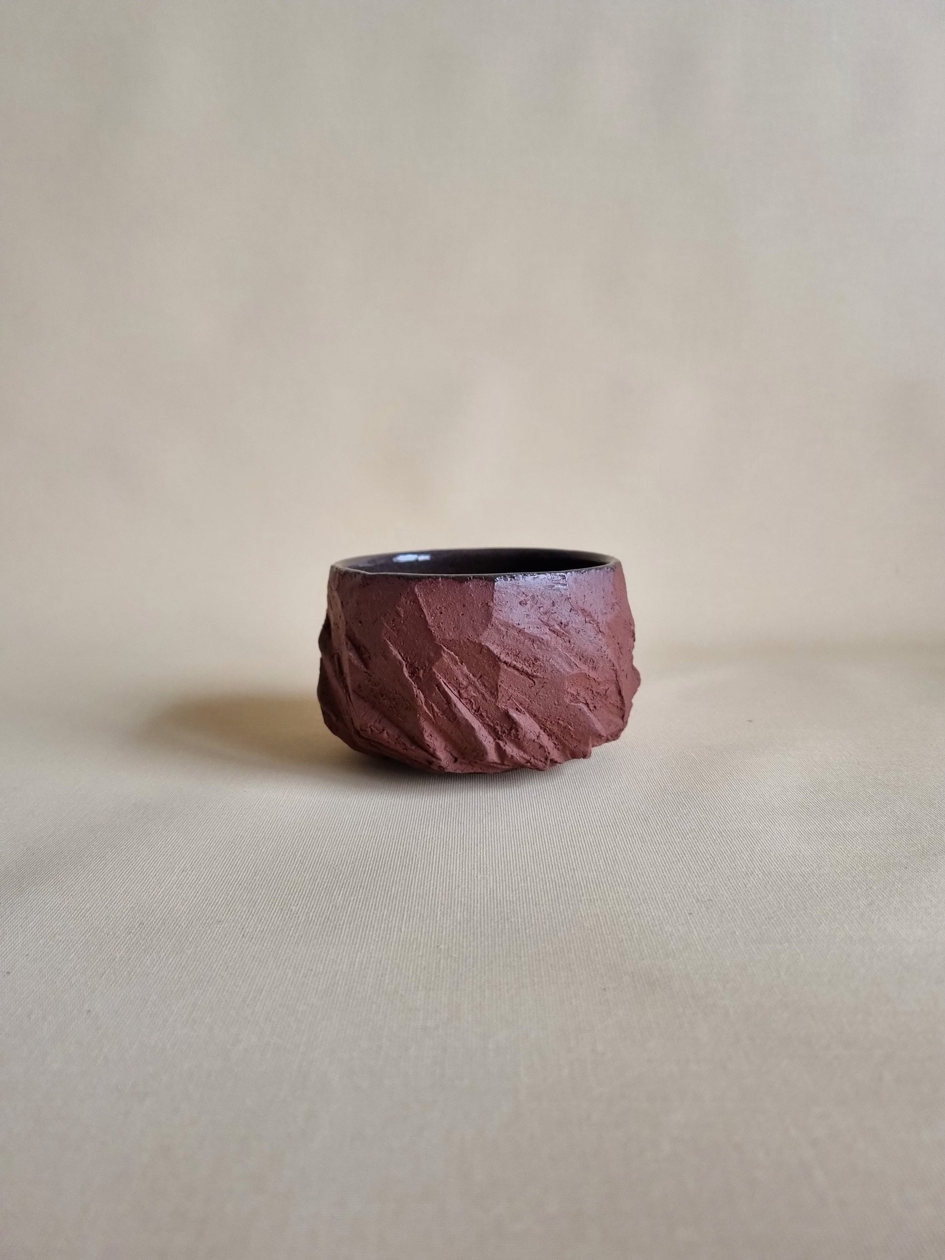 A medium cup, perfect for coffee or tea. Thrown on the wheel and carved by hand, giving it a personality of its own.