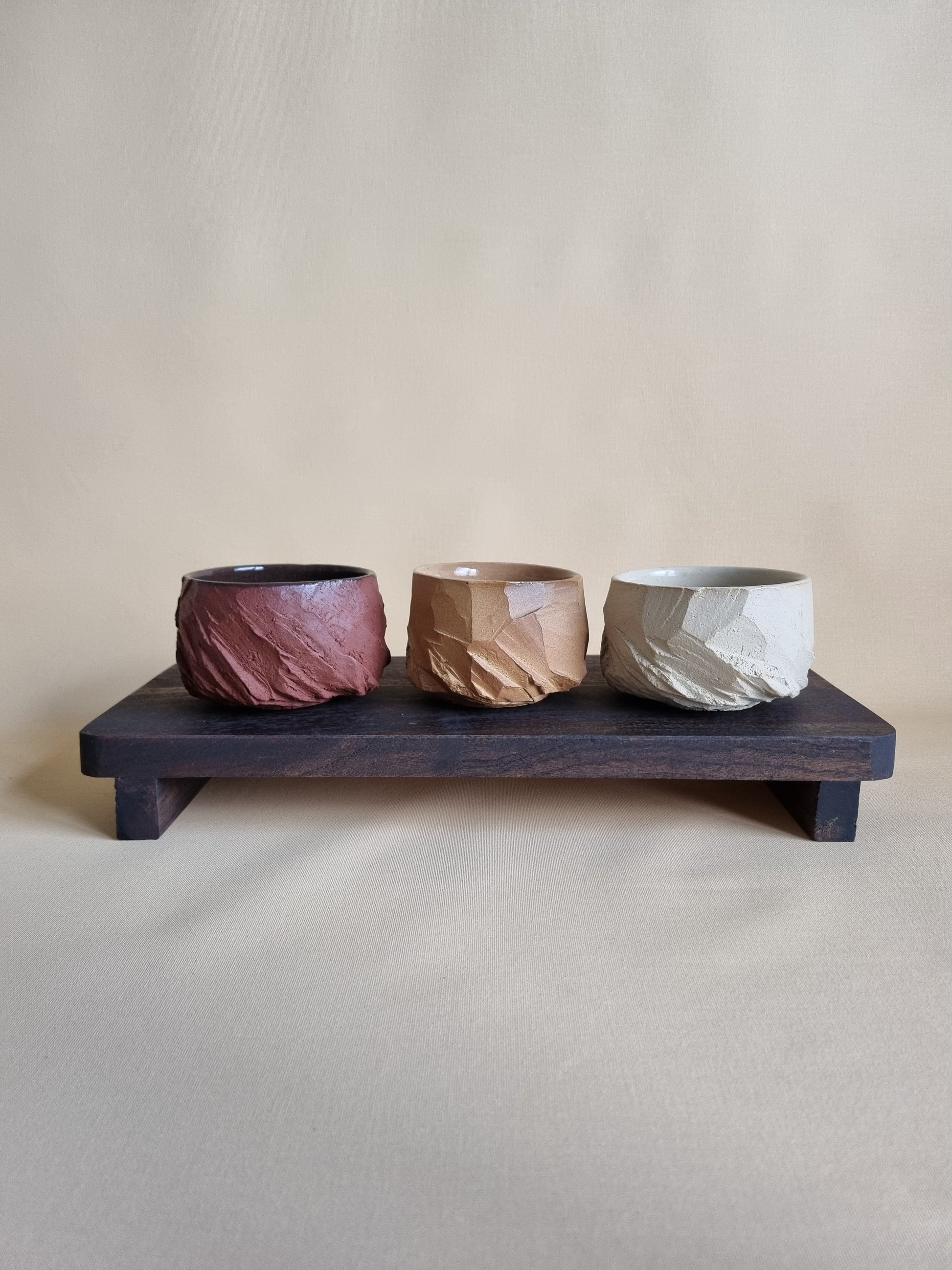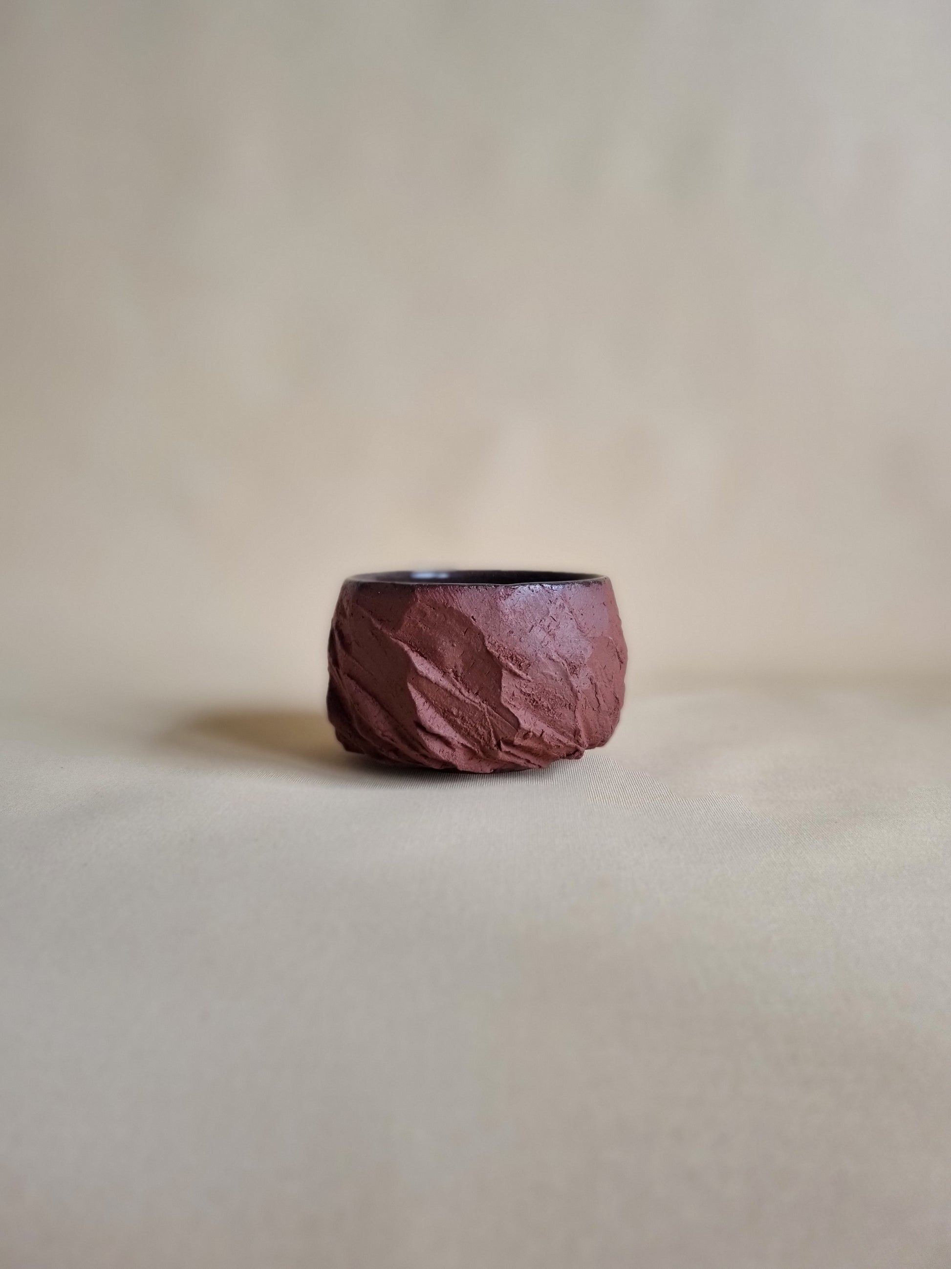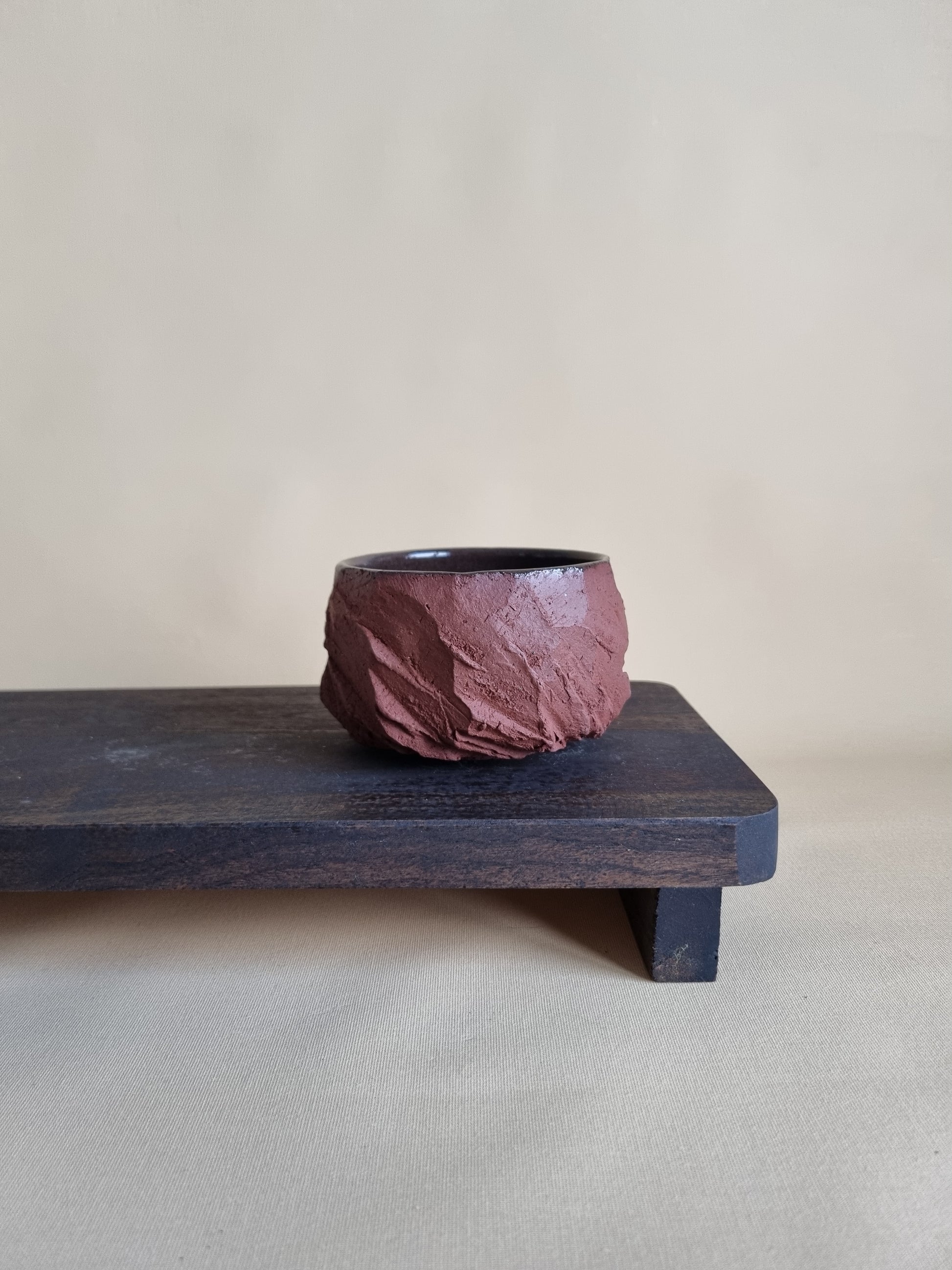 A medium cup, perfect for coffee or tea. Thrown on the wheel and carved by hand, giving it a personality of its own.