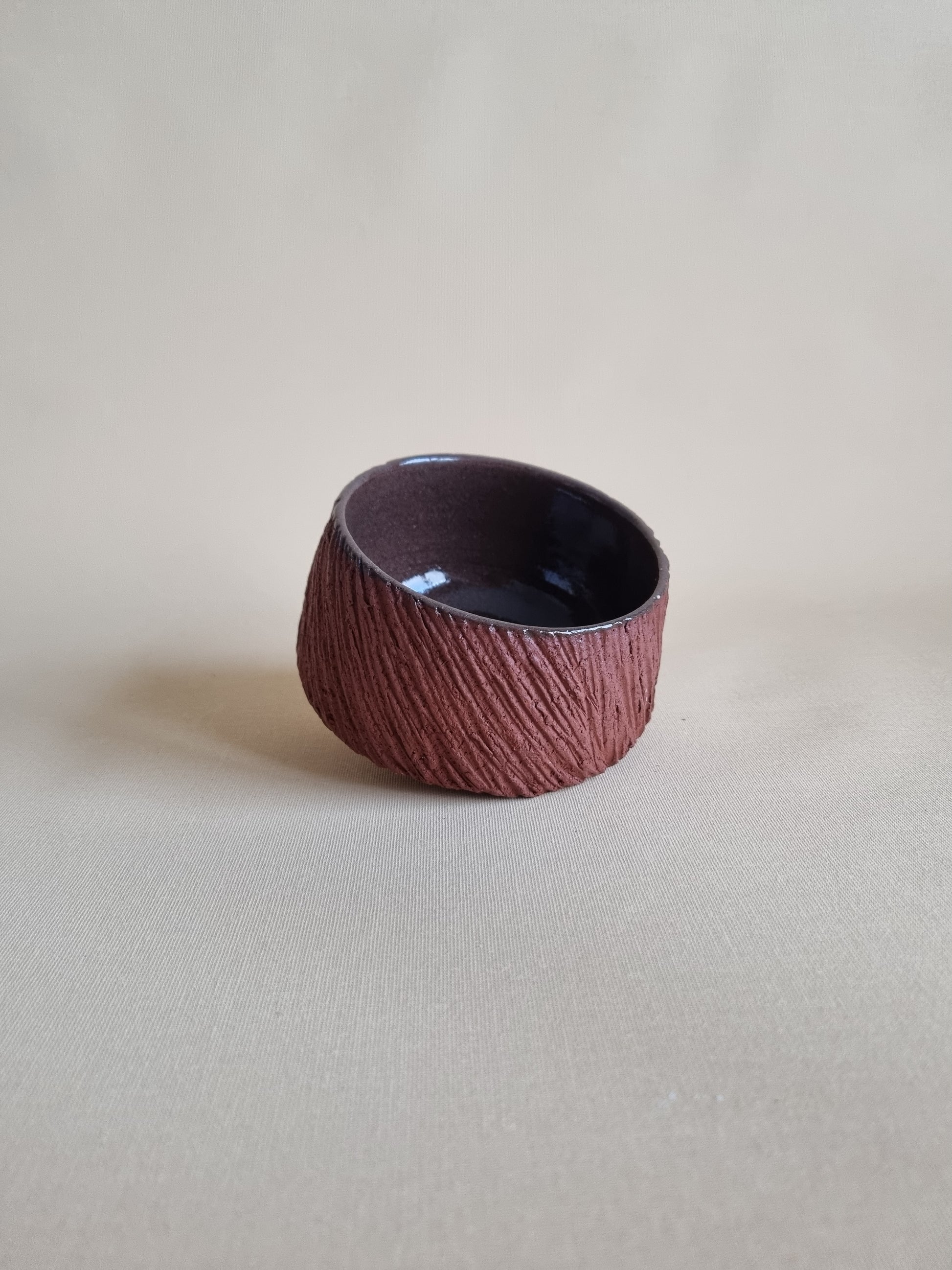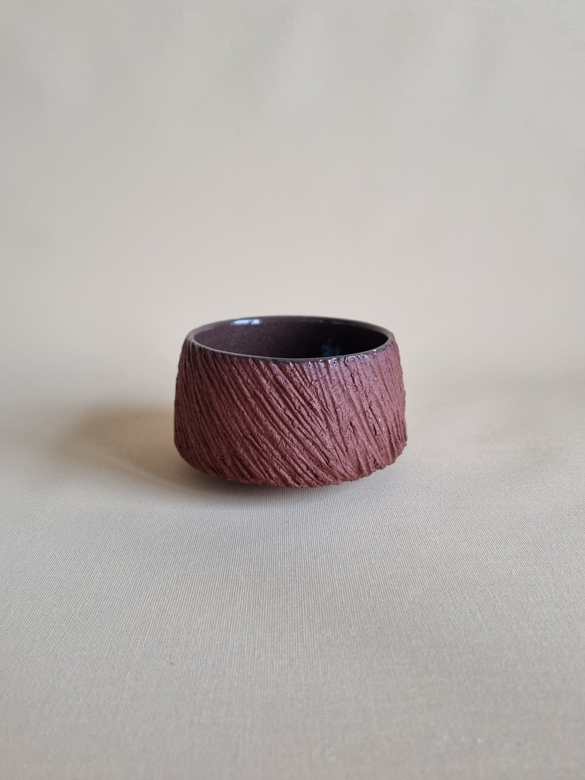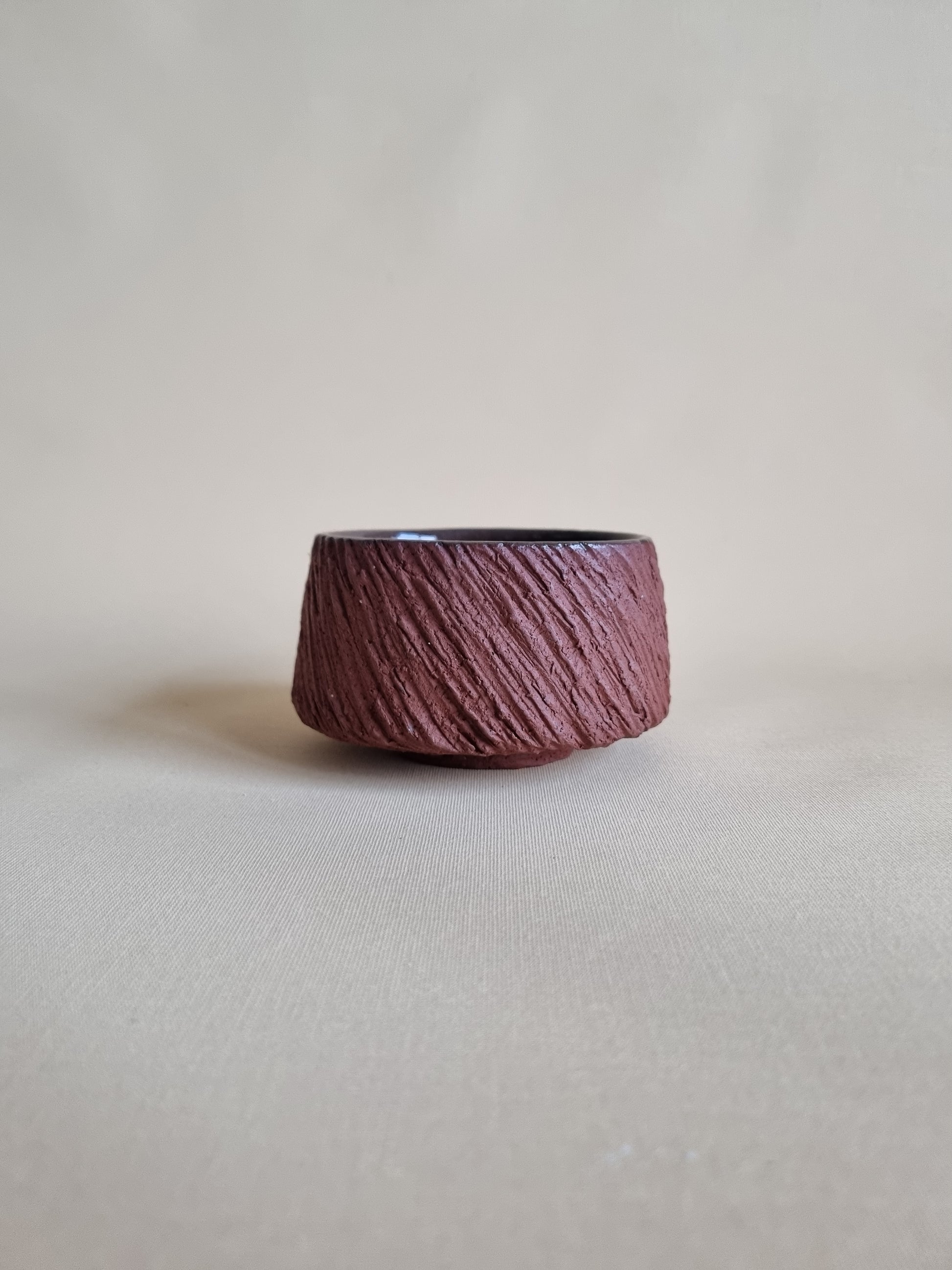 A medium cup, perfect for coffee or tea. Thrown on the wheel and carved by hand, giving it a personality of its own.