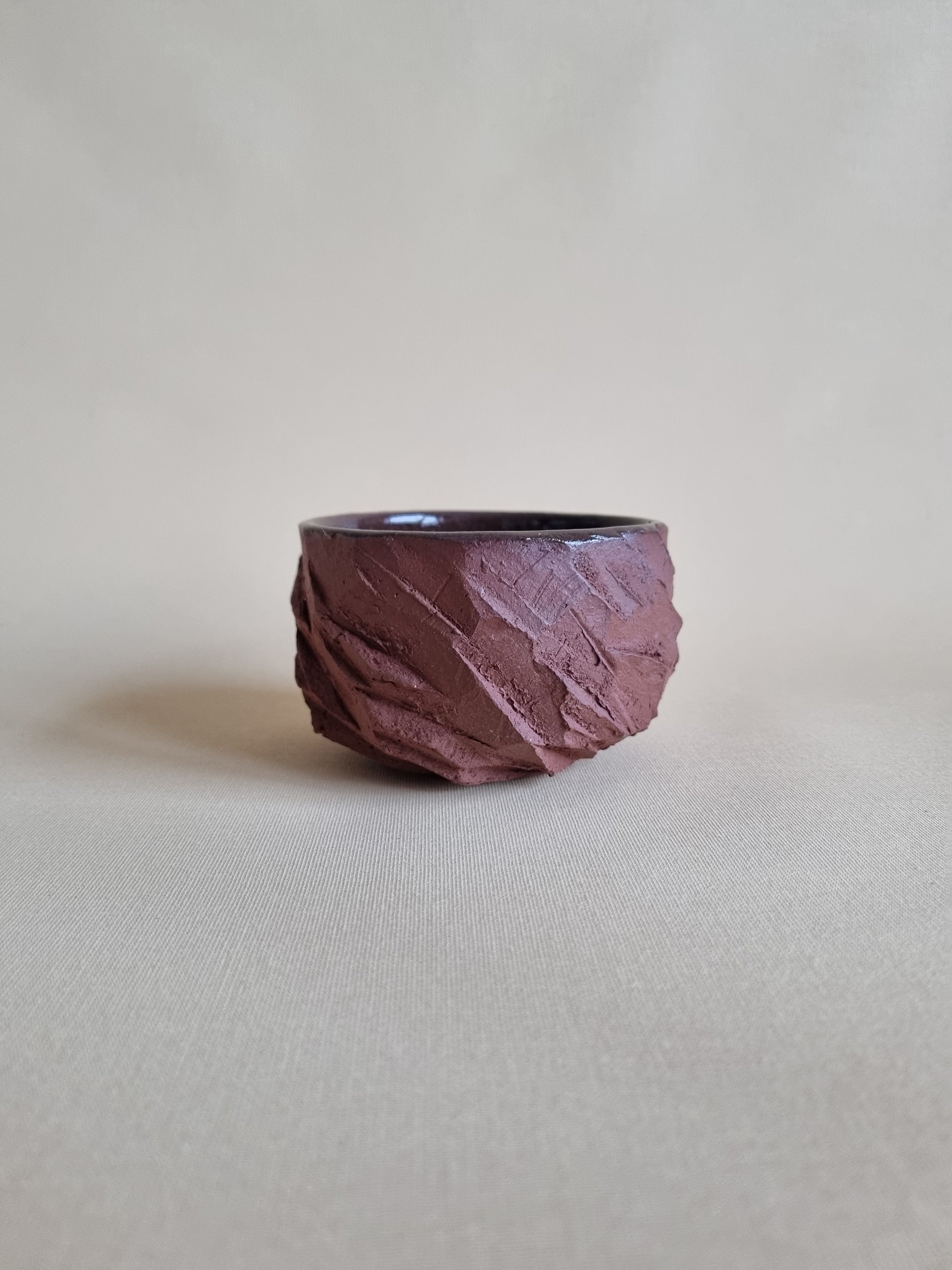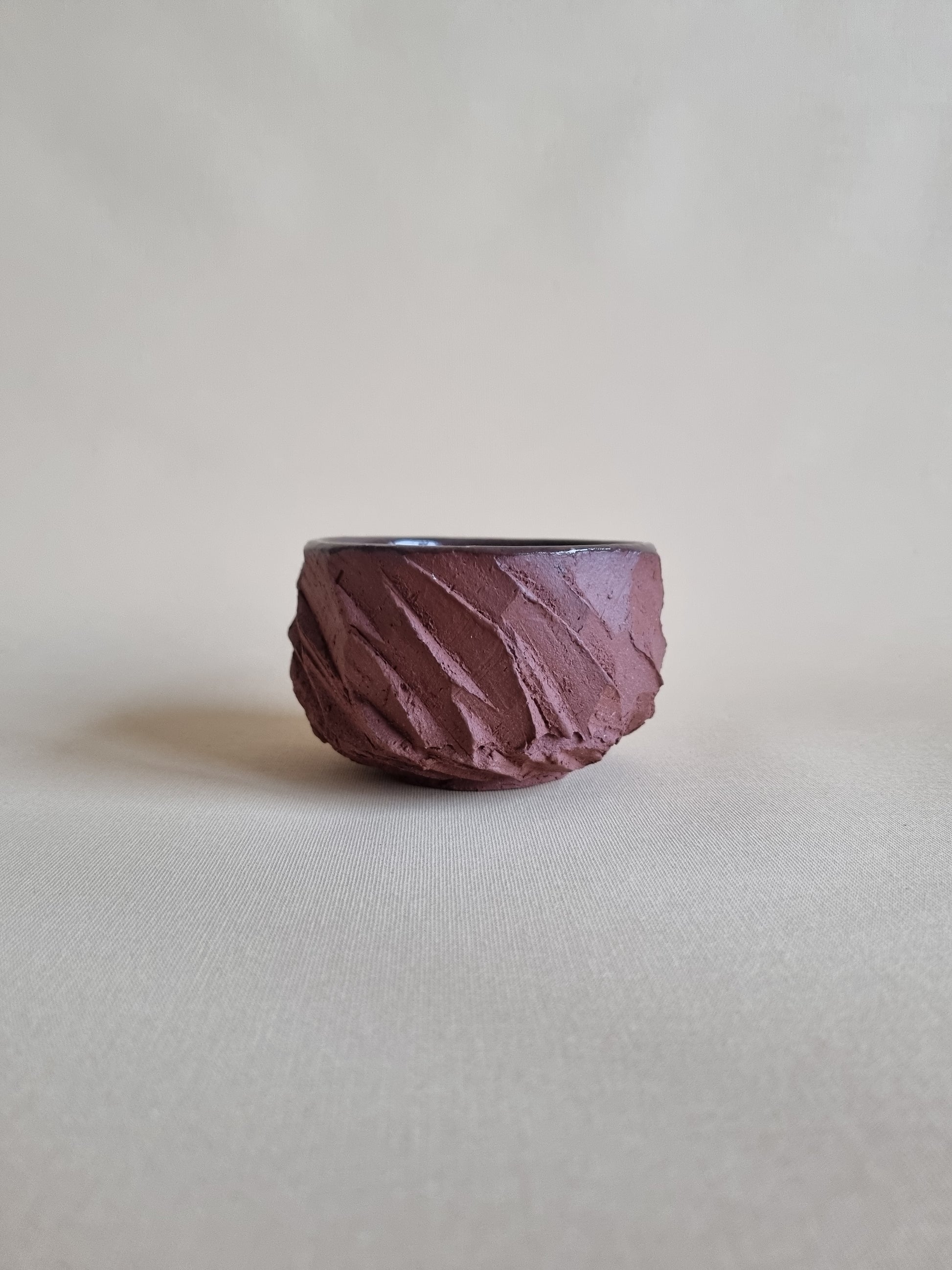 A medium cup, perfect for coffee or tea. Thrown on the wheel and carved by hand, giving it a personality of its own.