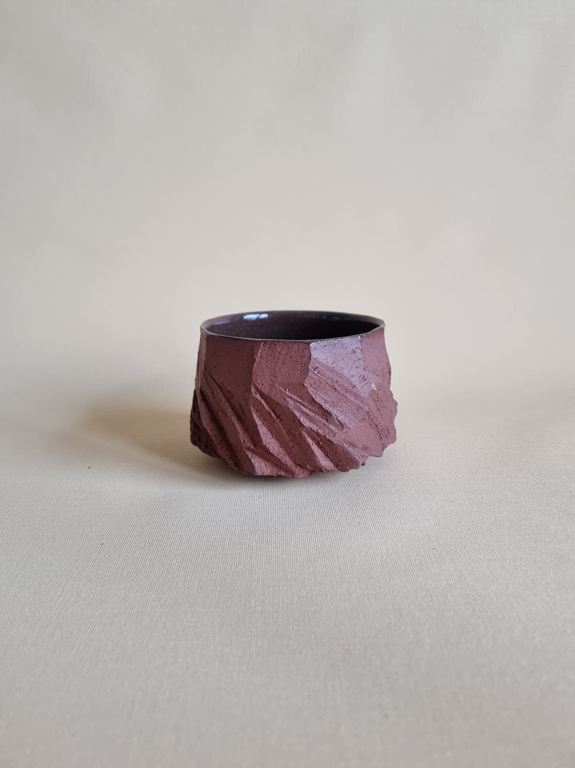 A medium cup, perfect for coffee or tea. Thrown on the wheel and carved by hand, giving it a personality of its own.